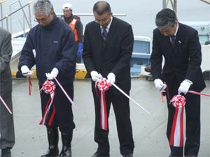 当日はあいにくの天候でしたが、セレモニーが開かれテープカットを行った後、第11北信丸の橋由信さんと第63豊漁丸の庄林満さんの2隻で初日は運行されました。