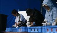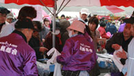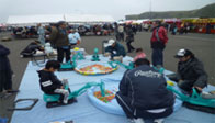 物販コーナーでは、午前10時00分の販売開始前から各物販テント前に人が並び、浜値で販売される落石の海産物を購入しようと大勢の人で賑わっておりました。