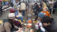 炭火焼きコーナーでは、物販テントで購入した魚貝類を焼くことができ、大勢の人が新鮮な魚貝類をその場で焼いて食べている姿がありました。