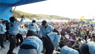 最後に、餅まき抽選会が盛大に行われ、抽選券が入っている餅を拾い、景品を手にして喜ぶ姿が見られるなど大盛況のうちに終えることができました。