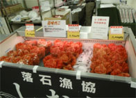 5月30日から6月4日の6日間に東京都立川市にある伊勢丹立川店にて「初夏の大北海道展」が開催され、落石漁協より「浜ゆでしお風花咲かに」、「船上活〆ときしらず」を出品しました。他にも海鮮工房霧娘の「たこ飯弁当」、「たこザンギ」等霧娘商品も出品しました。今回は落石漁港特集として組んで頂き出店させて頂きました。落石の商品だけでなく、「落石」という地名や水産物の周知が広く図られ、落石の食材を多くの人に食べてもらえればと思います。