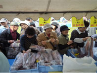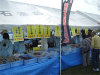 落石漁協からは、タコ、灯台ツブが販売され、女性部からは、タコザンギ、たこ飯等、海鮮工房霧娘からは、たこ柔らか煮、たこキムチ等の加工商品が販売されました。