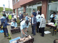「おちいし岬フットパス」のゴール地点である漁協では、海鮮工房霧娘より、霧娘弁当のほか落石の海産物を使用した花咲がにの鉄砲汁、イカ一夜干し、秋鮭などの焼き物が提供され、参加者は落石の海産物を使用した美味しい料理を食べて大満足の様子でした。