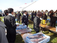 午前10時の販売開始前から目当ての海産物を購入しようと販売ブースの前で並んでいる人が見られました。落石の海産物のブランド価値を高めていけるよう品質向上を目指して行きます。