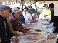落石漁協からは、タコ、灯台ツブが販売され、女性部からは、秋味鍋、タコザンギ、たこ飯等が販売されました。