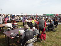 当日は、晴天の中天候に恵まれ、多くの人が会場に訪れました。午前10時の販売開始の前から並んでいる人が多く見られ、一人で複数の商品を購入する姿が見られました。