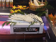 9月27日、28日の2日間に、落石産水産物の消費拡大やオリジナルブランド「しお風」の認知向上を目指して、広島県内のスーパーでしお風ブランドで販売している生鮮サンマと秋鮭の切身を販売しました。
