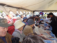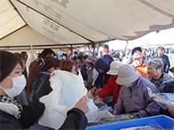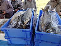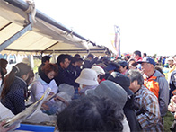 落石漁協からは、タコ、灯台ツブ、船上にて活締めされました山漬が販売され、女性部からは、秋味鍋、タコザンギ、たこ飯等が販売されました。