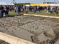 当日は、晴天の中天候に恵まれ、多くの人が会場に訪れました。午前10時の販売開始の前から並んでいる人が多く見られ、一人で複数の商品を購入する姿が見られました。