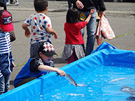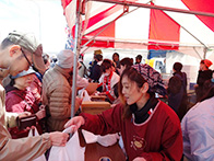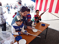 最後には、餅まき抽選会が盛大に行われ、抽選券が入っている餅を拾い、景品を手にして喜ぶ姿が見られるなど大盛況のうちに終えることができました。