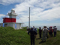 落石灯台では海上保安部の協力により一般開放され、落石灯台から見渡せる風景に満足している様子でした。今年も旧落石無線局跡で開催中の「落石計画」に合わせて実施され、途中で芸術作品を満喫していました。