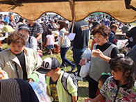 当日は、好天に恵まれ気温も高めということもあり多くの人が会場に訪れました。午前10時の販売開始の前から並んでいる人が多く見られ、一人で複数の商品を購入する姿が見られました。