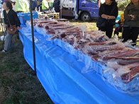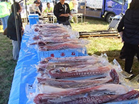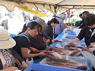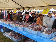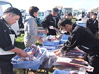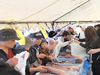 落石漁協からは、タコ、船上にて活締めされました山漬が販売され、女性部からは、秋味鍋、タコザンギ、たこ飯等が販売されました。