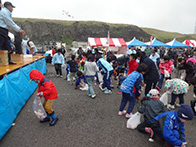 イベントでは、ホッキ貝早剥き競争が行われ、1分間でどれだけホッキの殻を剥けるか競い、地元の人や観光で訪れた人が挑戦しました。悪戦苦闘しながら剥く挑戦者もおり、貝の中の身に傷をつけないようにするために苦労していました。最後には、餅まき抽選会が盛大に行われ、抽選券が入っている餅を拾い、景品を手にして喜ぶ姿が見られるなど大盛況のうちに終えることができました。