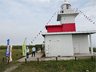 落石灯台では海上保安部の協力により一般開放され、落石灯台から見渡せる風景に満足している様子でした。今年も旧落石無線局跡で開催中の「落石計画」に合わせて実施され、途中で芸術作品を満喫していました。