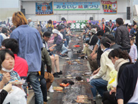 炭火焼きコーナーでは、物販コーナーと購入した海産物をその場で焼くことができ、大勢のお客様がその場で食事を堪能しておりました。炭火焼き以外にも落石産の海産物を使用したほっきカレーやたこ飯、昆布ラーメンなどその他色々と販売しており、そちらも次々完売となりました。