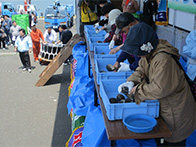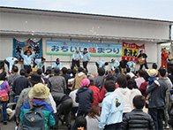 また、数々のイベントが用意してあり、ほっきの貝剥き競争では地元はもちろん地方からのお客様も参加され、制限時間1分の中で手慣れた方や悪戦苦闘された方など白熱した競争となっておりました。お子様向けのコーナーなども用意してあり大勢のご家族の方々がお子様とイベントを楽しまれておりました。最後のイベント餅まきも大変盛り上がり抽選券が当たり景品と交換し喜ばれるお客様もいて大盛況のうちに終えることできました。